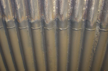 锅炉水冷壁经电弧喷涂后的现场照片 科得力丝材CP-HCrC在CFB水冷壁上使用 一个大修期后的现场照片