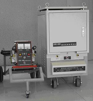 二、最新超音速电弧喷涂设备 本公司生产的最新超音速电弧机(CAS-400型)主要由主机电源、超音速电弧喷枪、送丝机构、控制系统和压缩空气系统组成。设备制造精良,性能可靠,运行稳定性好,为获得性能优良的喷涂层提供了最基本的保障。 主机电源的主要零部件采用进口零件组成,所以电弧喷涂机表现出来的整体性能极其稳定可靠。喷涂过程中很少有断弧和爆枪现象。由于电源稳定、调节灵敏,所以形成的喷涂层均匀,氧化烧损较少。 超音速电弧喷枪是根据Laval气体流动原理制成的,压缩空气流经过精心设计和加工的Laval腔体时,有一个不断加速的过程,至出口时形成了一个极高速度气流,气流将熔融金属吹散形成雾化粒子流。为了获得稳定的粒子流,喷枪必须具有结构良好的雾化喷嘴。 送丝机构也至关重要,送丝的快慢以及送丝速度的均匀一致性直接影响到电弧的稳定性、熔滴的雾化效果、喷涂效率等。CAS-400型超音速电弧喷涂机的送丝机构非常稳定可靠。 导电嘴等零部件经久耐用,可大大提高易损件使用时间,降低生产成本,提高工作效率,也可有效地提高涂层质量。