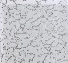 两种喷嘴材料的组织状态都为铸造态,经过实物取样、镶嵌和磨制金相试样,316试样用10%过硫酸铵水溶液电解浸蚀,HY40A试样用过饱和苦味酸水溶液加数滴盐酸浸蚀,然后用LEICA-DMLM光学显微镜(日本)对喷嘴材料的金相组织进行观察分析,放大倍数选用100倍。